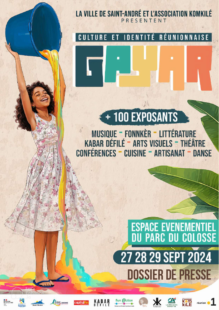 Trois jours pour célébrer la culture et l’identité réunionnaise. Depuis ce vendredi 27 septembre, le salon a démarré. Il s’achèvera ce dimanche 29. La ville de Saint-André et l’association KOMKILE accueillent la troisième édition du GAYAR au parc du Colosse. Cet événement met à l’honneur la richesse culturelle de La Réunion à travers diverses formes d’expressions artistiques et créatives. Parrainée par le célèbre Danyel Waro, cette manifestation propose de vivre trois jours d’échanges et de partage autour de l’identité réunionnaise, dans un contexte où l’unité et la paix sont plus que jamais d’actualité.