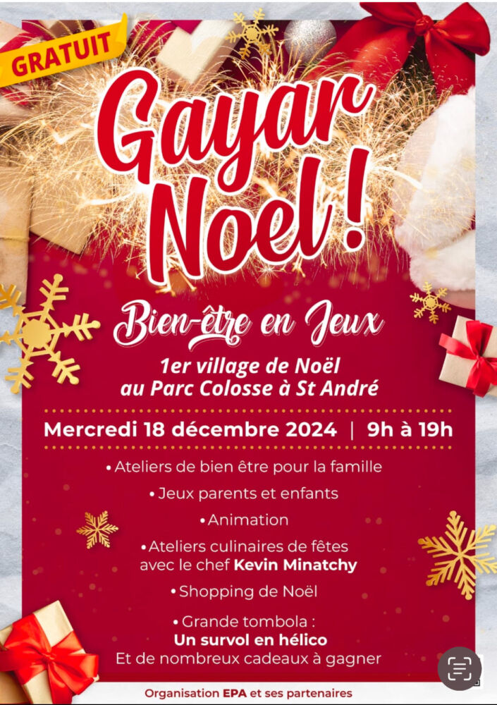 Dans le cadre de ses missions de prévention des violences intrafamiliales, l’association EPA organise un événement unique sous le signe de la magie des fêtes : Gayar Noël, au Parc du Colosse à Saint-André, le mercredi 18 décembre 2024, de 9h à 19h.