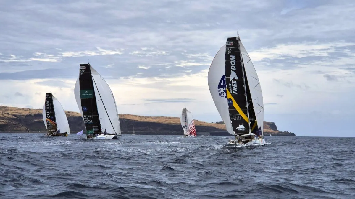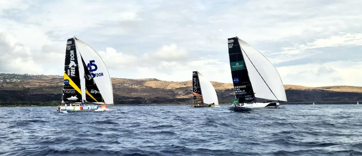 Le vent est complètement tombé, forçant l’équipage à composer avec des allures plus douces et à effectuer quelques réglages techniques à bord.