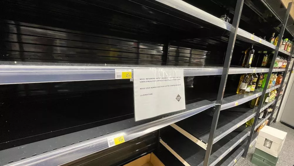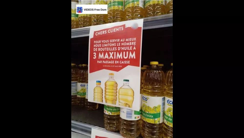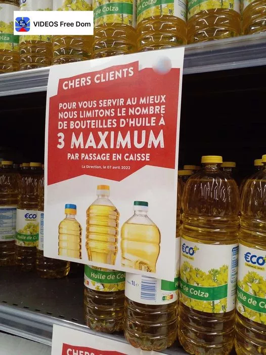 Dans les commerces où il « existe » encore de rares bouteilles d’huile de tournesol, les clients sont rationnés : pas plus de 3 bouteilles / personne et par passage en caisse.