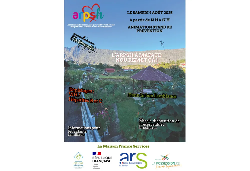 L’Association Réunionnaise pour la Prévention des Risques liés à la Santé et aux Harcèlements (ARPSH), est fière d’annoncer qu’une 3ᵉ inédite pour une action de prévention qui se tiendra à La Nouvelle, Mafate, le samedi 9 Août 2025, de 13 h à 17 h. Cette initiative a pour but de sensibiliser la population à l’importance de la santé sexuelle, de lutter contre les infections sexuellement transmissibles (IST), et de promouvoir des comportements responsables.