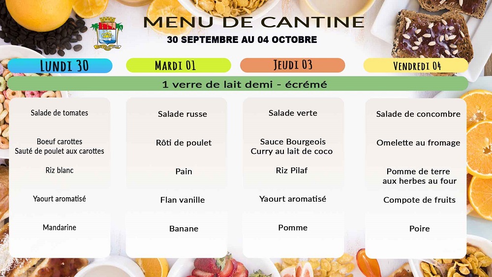 Nous vous informons que la restauration scolaire sera assurée dans toutes les écoles publiques et privées de Saint-Pierre (élémentaires et primaires).
