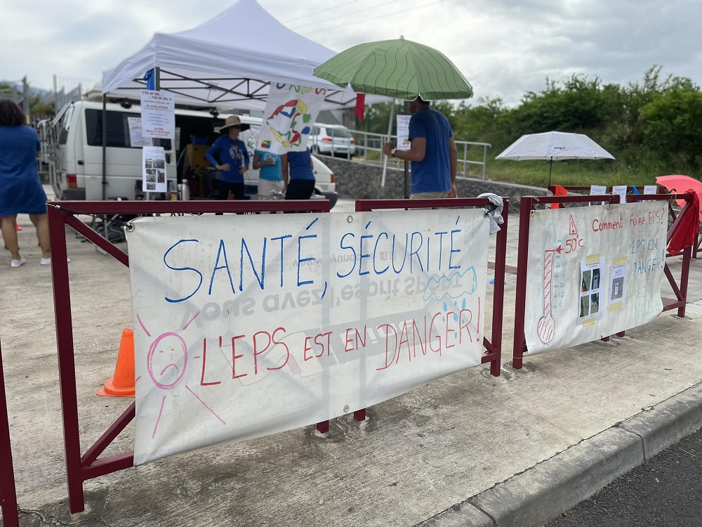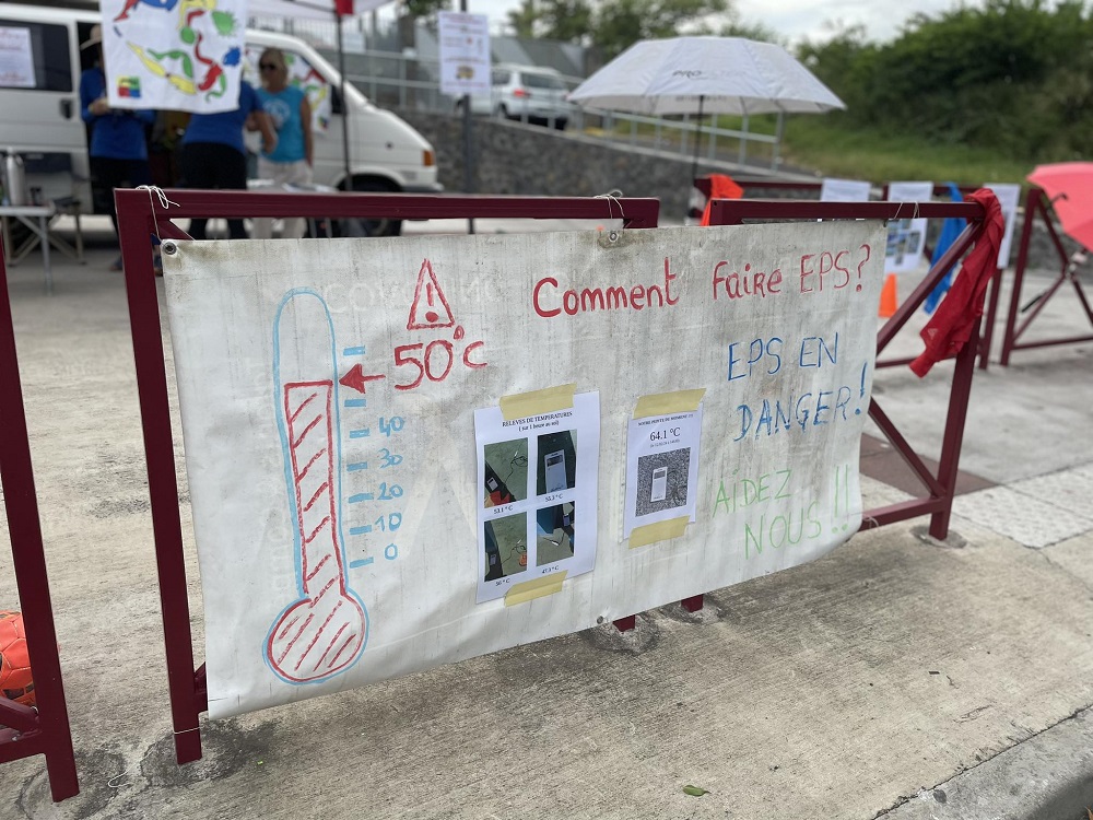 « On en a marre de voir nos élèves courir sous 45 degrés au soleil, des températures relevées au sol jusqu’à 65 degrés encore la semaine dernière. Dans ces conditions là, on met en danger nos élèves en faisant cours. Et nous, on ne peut plus supporter, ce n’est plus faisable », déclare le professeur d’EPS.