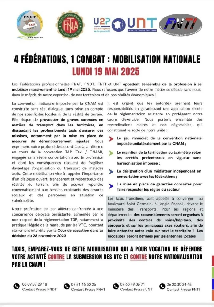 associés, en réaction à une réforme du transport sanitaire par taxi actuellement en discussion au niveau national.