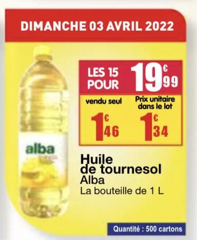 En Guadeloupe, ce dimanche 03 avril 2022, le magasin Carrefour du centre commercial Destreland à Baie Mahault avait organisé une vente exceptionnelle de bouteilles d’huile à 1,34€ le litre.