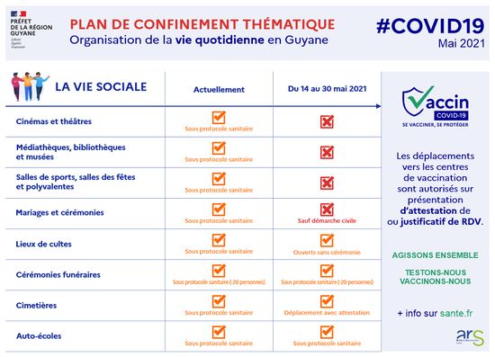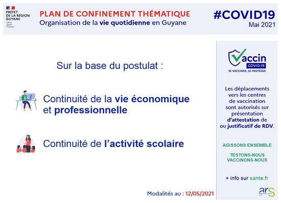 Le Préfet de la Région Guyane et la Directrice Générale de l’ARS, en accord avec les acteurs et élus locaux, appellent à la plus grande vigilance de toutes les guyanaises et guyanais. Un confinement thématique est nécessaire et adapté à la situation, ce dernier sera mis en place à compter de ce vendredi, afin de freiner la propagation du virus.