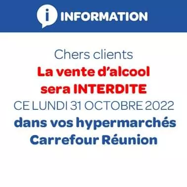 « Chers clients, la vente d’alcool sera interdite ce lundi 31 octobre dans vos hypermarchés Carrefour Réunion.