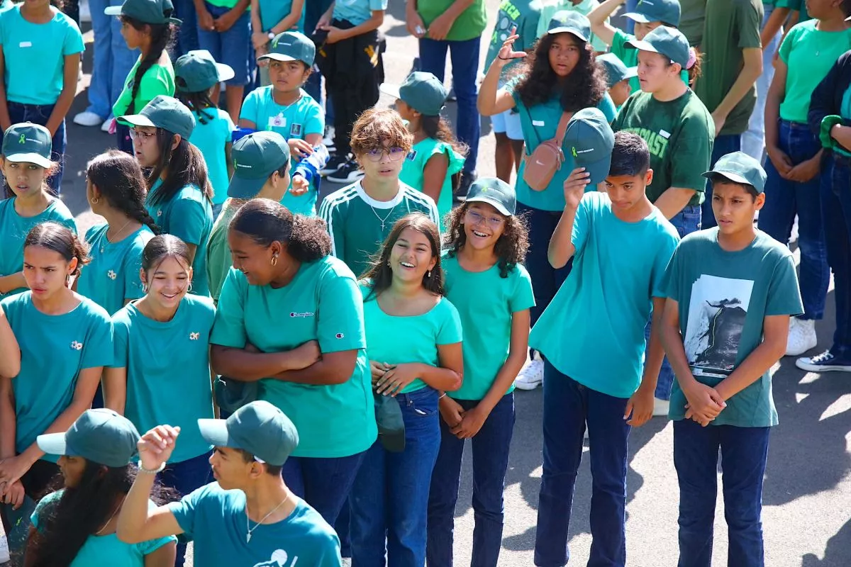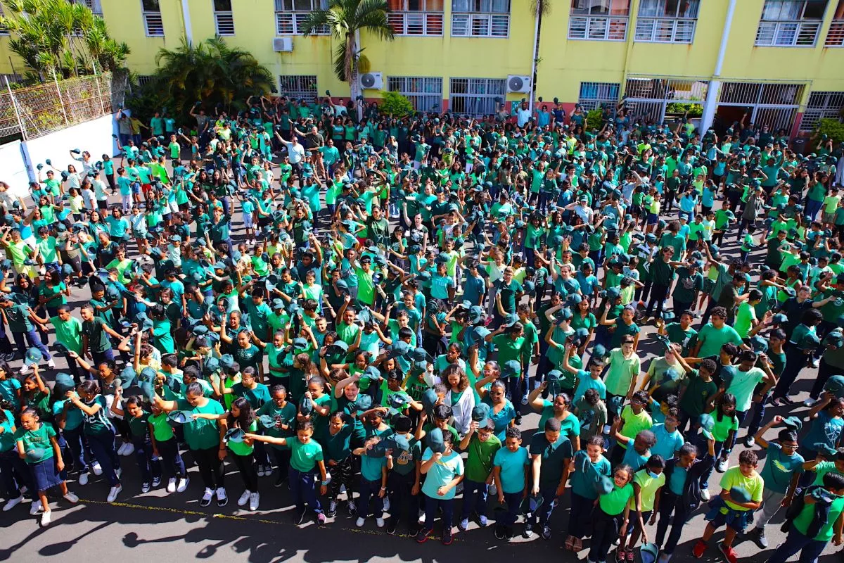 La matinée a démarré par une chaîne de la fraternité avec l’ensemble des élèves de maternelle, de primaire et des collégiens vêtus de vert.