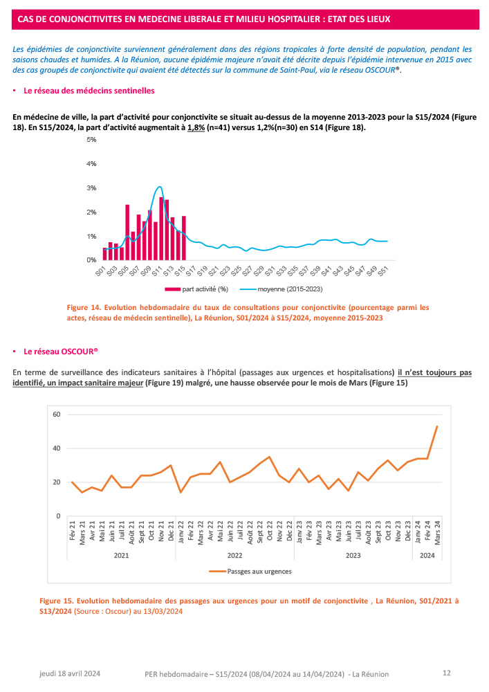 · Paludisme d’importation : un bilan du premier trimestre 2024 est présenté à la page 5. Ce dernier montre une hausse importante par rapport aux années précédentes.