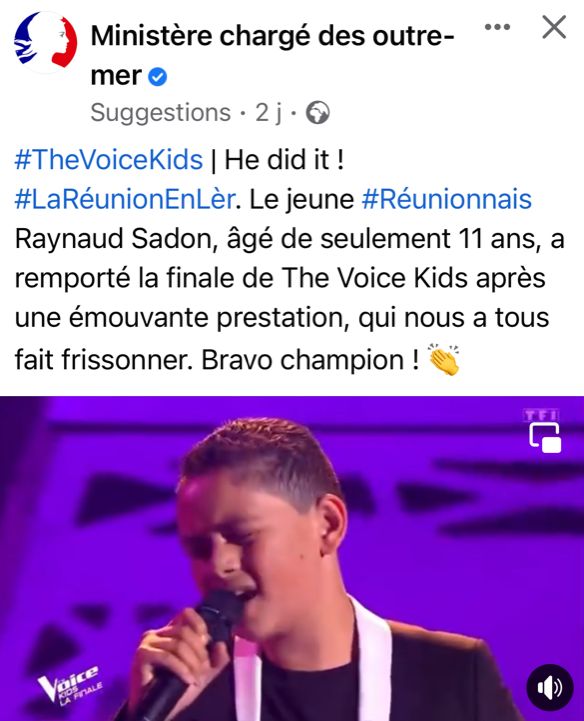 On ne le dira jamais assez, mais ce qu’a réalisé ce gamin de la Grande Ferme de la Plaine-des-Cafres « quartier la fré » du Tampon, relève de l’exploit : celui de briller au national et de ramener le titre de meilleur chanteur (dans sa catégorie) à la Réunion. Je serai même tenté de préciser au-delà de sa catégorie car Raynaud chante mieux que de nombreux adultes. Mais faut pas croire que tout cela est arrivé comme ça, d’un claquement de doigts. S’il existe vraisemblablement une part du destin dans son ascension, le petit bonhomme a aussi beaucoup travaillé et ce, dès son plus jeune âge aux côtés de sa maman qui lui faisait chanter de belles romances. quand ces petits camarades jouaient à la Play Station, lui chantait dans sa chambre, s’entrainait et s’entrainait encore. Ce qui fait qu’à l’âge de 8 ans, il était déjà capable de chanter sur les podiums, dans les fêtes foraines. Raynaud est donc un bel exemple de réussite, un modèle pour tous les jeunes et moins jeunes, dans le sens où, avec beaucoup de modestie, il nous montre que celui ou celle qui veut, peut ! A condition de croire vraiment en ses rêves et de s’investir à fond pour les concrétiser. A condition  aussi de ne jamais abandonner, de ne pas se décourager même lorsque des nuages s’amoncellent. Il n’y a rien sans rien ! L’arc en ciel a besoin du soleil, certes, mais aussi de la pluie pour donner des couleurs au ciel. De la même façon que l’existence n’est pas faite que de hauts. Raynaud est d’un naturel presque déconcertant, toujours souriant, affichant constamment une bouille de winner (vainqueur), comme le sont aussi Soan, l’autre vainqueur de The Voice ou encore Jody (le demi finaliste) et bien d’autres jeunes également dans divers autres domaines. Je pense notamment à nos champions sportifs. Des gamins qui ouvrent la voie, qui montrent le chemin et qui n’ont pas eu peur de « désote la mer » pour exprimer leurs talents.