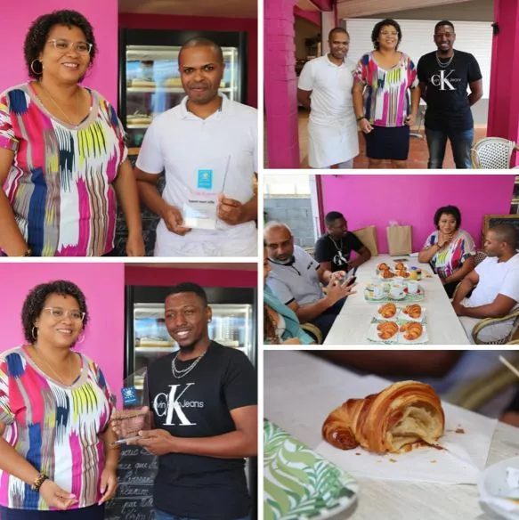 Pendant que certains posaient avec Raynaud, d’autres s’affichaient aux côtés d’autres « stars » péi. A l’image de Juliana M’Doihoma, maire de Saint-Louis, qui pose (photo ci-dessous) aux côtés de Kevin Nampota, 28 ans et Vincent Angouroussiva, 30 ans, deux Saint-Louisiens qui, respectivement, ont terminé 1er et 3ème au concours régional du meilleur croissant au beurre.