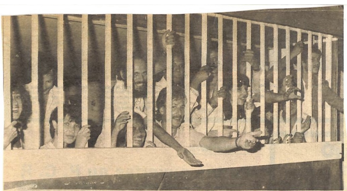 Une photo célèbre de l’histoire de Radio Free Dom : les animateurs privés de liberté et enfermés derrière une grille…de programme !