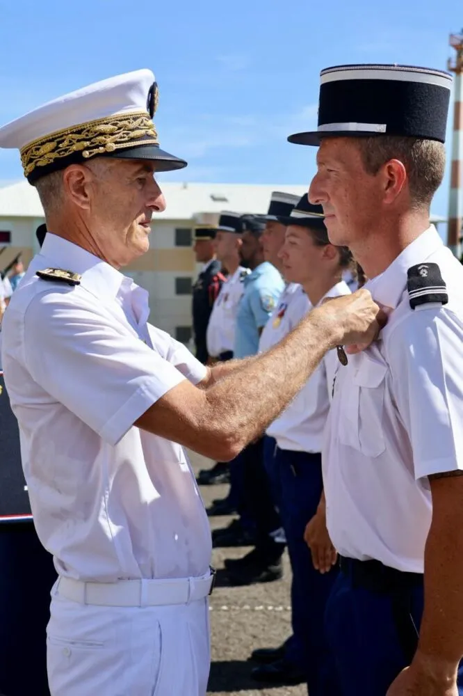 Présidé par le préfet de La Réunion, Patrice Latron, en présence du général Frédéric Labrunye, commandant la gendarmerie de La Réunion, ainsi que des élus autorités et judiciaires, administratives et militaires, cet hommage national a permis de saluer la mémoire des 12 gendarmes morts en mission ou en service au cours de l’année écoulée.