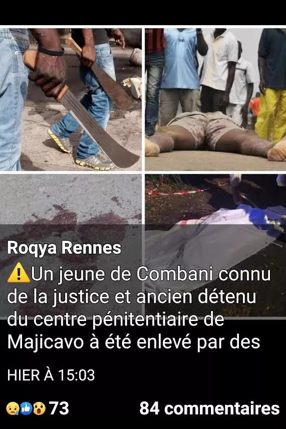 Un jeune de Combani aurait été pris à partie dans le village de Combani à Mayotte cette semaine. Il aurait été passé à tabac, égorgé, puis éventré.
