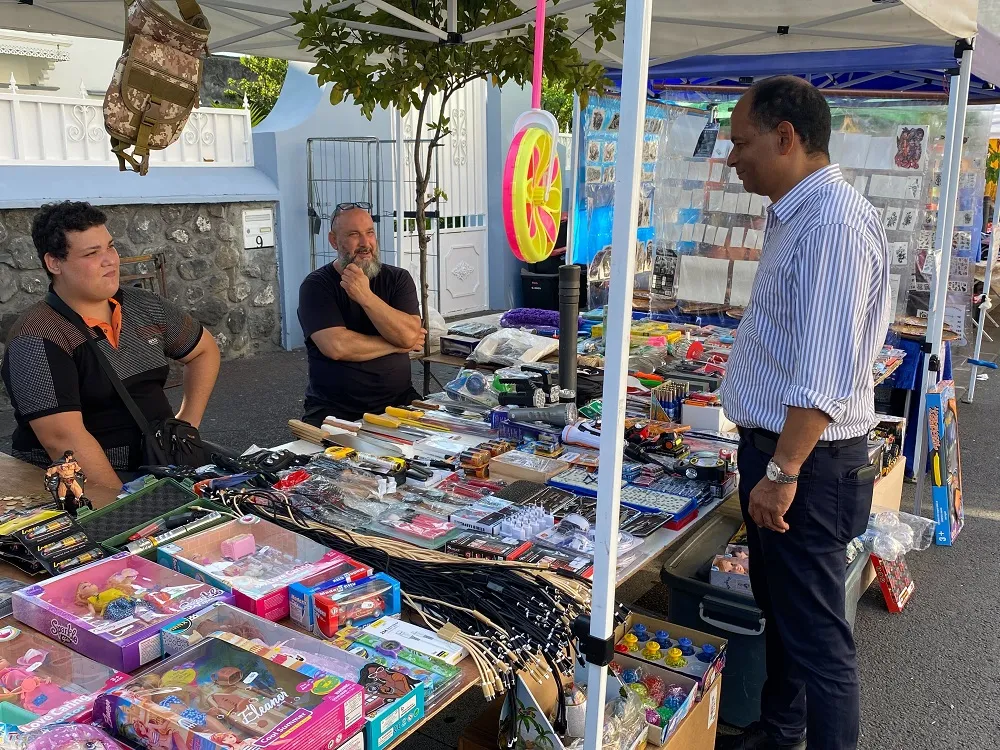 commerçants du cœur de Ville (ACCV), Zakaria CADJEE, et un autre membre de l’ACCV, également commerçant, Samir BSILI, saluent l’attracviité de la braderie du centre-ville, de la fête foraine et des concerts organisés au parc Expobat jusqu’au 16 juillet.