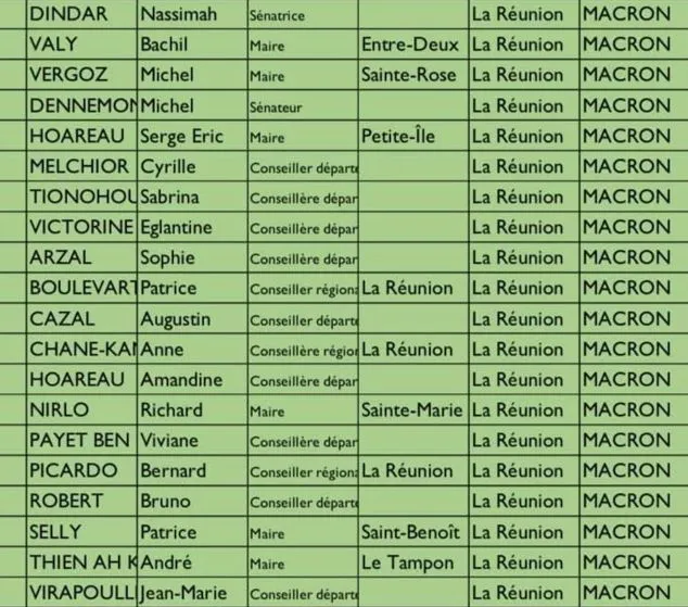 Si on n’a pas du tout vu Michel Vergoz, le Macroniste historique de la Réunion, durant la visite présidentielle dans notre île, on n’a pas raté en revanche Ramata Touré (ici entourée du couple présidentiel sur un bateau à Mayotte). Ramata Touré qui est secrétaire nationale du bureau exécutif de Renaissance, le Parti présidentiel. Elle est aussi adjointe au maire de Sainte-Suzanne Maurice Gironcel qui comparaît pour corruption du 21 au 27 mai prochain devant le tribunal correctionnel de Paris et dont le dir-cab est actuellement en détention dans le cadre d’une enquête sur un trafic de drogue entre Madagascar et la Réunion.