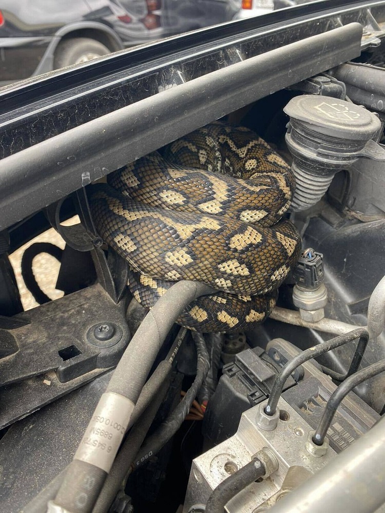 Pas de fuite d’huile, ni de courroie cassée ! Non, non, ce conducteur s’est retrouvé nez à nez avec… un python côtier !
