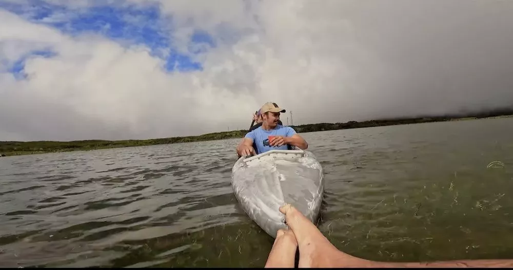 Ils font du kayak sur le « lac artificiel » créé par Batsirai à la Plaine des Cafres