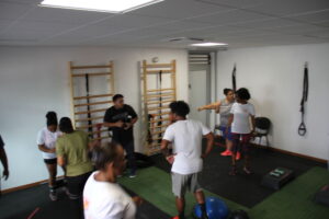 La nouvelle salle de sport polyvalente offre un espace moderne et sécurisé, accessible à tous.tes, pour la pratique de multiples disciplines. Par exemple, trois jours par semaine, les membres de l’association ABJI (Amicale Bouliste Jean Ivoula) peuvent venir participer à des séances de renforcement adaptées à leur niveau accompagnés d’un coach.