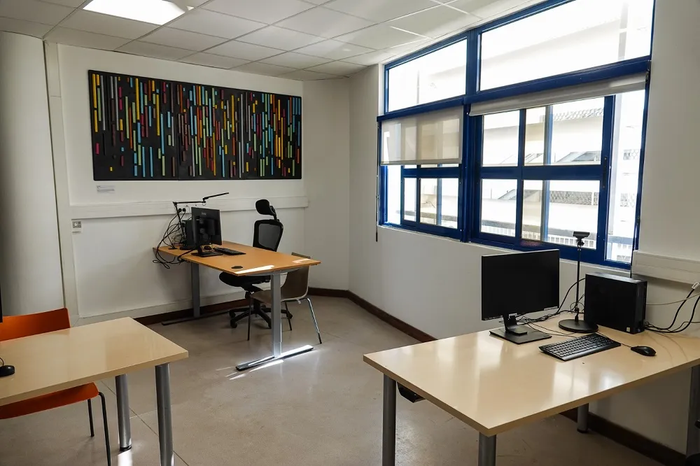 Trois postes de travail sont à disposition et équipés d’ordinateurs, de fauteuils ergonomiques, de lampes trois couleurs, d’un bureau réglable en hauteur ainsi que de logiciels adaptés. L’endroit se veut calme, pratique et ergonomique. Tout a été étudié, jusqu’au choix de l’œuvre qui viendra décorer la salle : une sculpture de l’artiste plasticienne sourde, Mathilde Lauret.