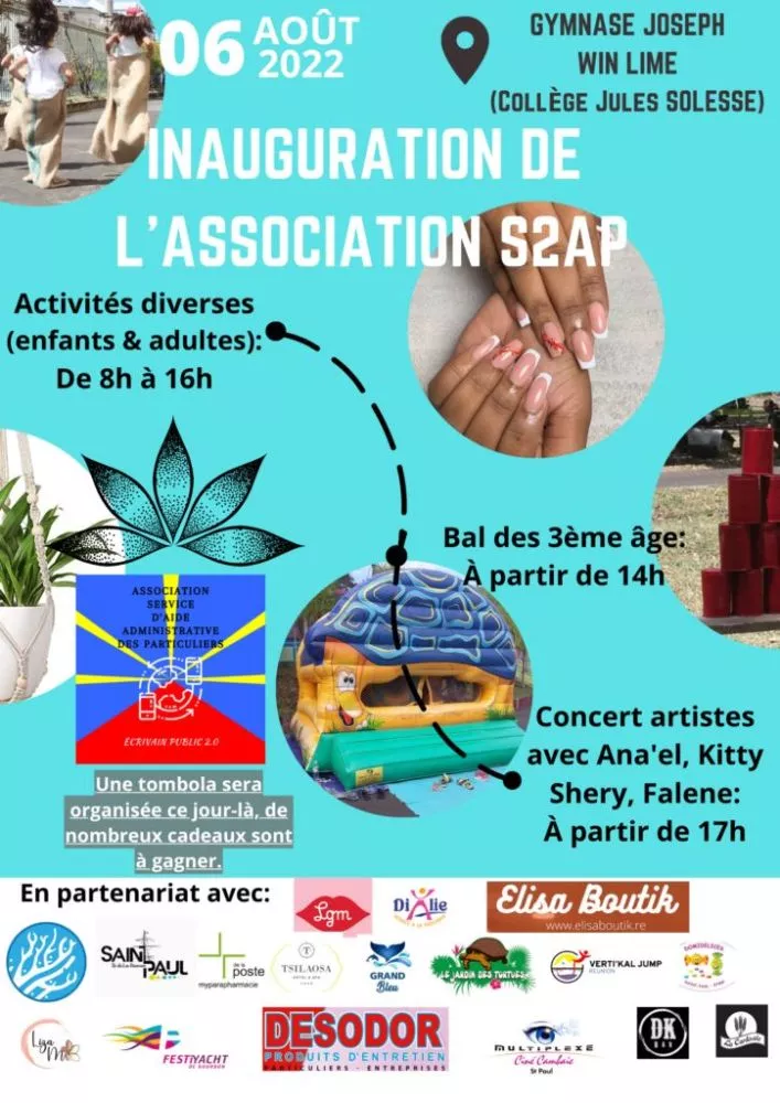 la Ville de Saint-Paul accueille sur son territoire l’association S2AP, dont la mission est d’accompagner le public dans les démarches administratives. L’inauguration de l’association aura lieu ce samedi 6 août 2022 au gymnase Joseph WIN LIME (Collège Jules SOLESSE).