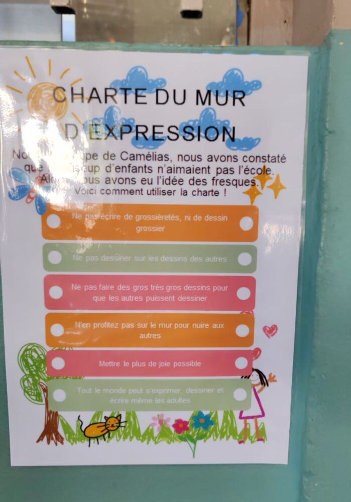 Au-delà de ses mots tracés à la craie, ce mur est un pont entre les élèves et les enseignants. Car il permet d’aborder des sujets essentiels : le harcèlement, la liberté d’expression, la gestion des émotions. C’est un espace où l’on apprend à écouter, à respecter, à dialoguer. Et pour que ce Mur d’expression reste un lieu d’échange et de respect, une charte a été rédigée par les élu.e.s du CED et guidera son utilisation, veillant à ce que chaque mot trouve sa juste place.