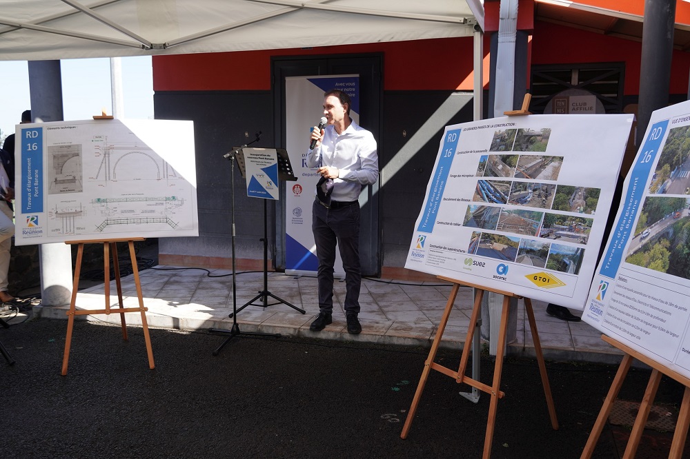En présence de nombreux autres élus dont le maire de la commune voisine de l’Étang-Salé, Mathieu Hoarau et les Conseillers départementaux Louise Simbaye et Jean-François Payet, Cyrille Melchior a rappelé le rôle majeur du Conseil départemental en matière de mobilité sur le territoire : « Notre Collectivité gère un réseau structurant important de 724 km de routes, qui compte près de 400 ponts. Nos investissements sont à la hauteur des enjeux, avec un budget annuel de près de 30 millions d’euros pour entretenir et améliorer ce patrimoine routier« .