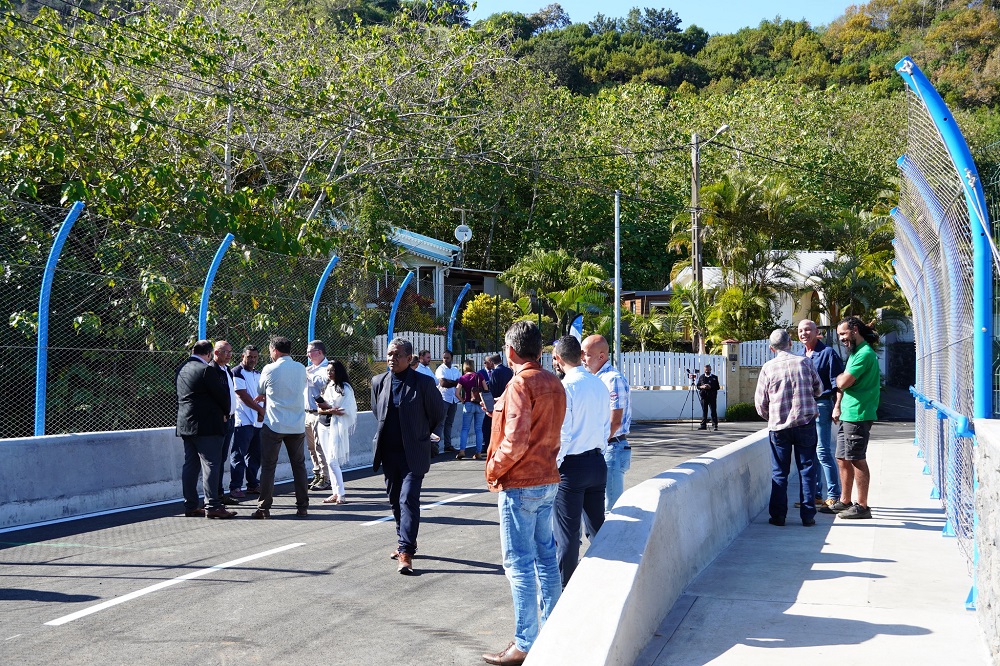 Cyrille Melchior n’a pas manqué de réitérer son soutien aux entreprises réunionnaises : « Derrière chaque chantier, il y a des entreprises qui font vivre des salariés, et des familles. Au travers de ses routes départementales, nous avons à cœur de faire vivre la commande publique locale, pour que nos entreprises puissent avoir de l’activité, et ainsi créer de la richesse, de l’emploi, et des infrastructures de qualité pour les Réunionnais. Pour le pont Banane, le projet a coûté 1,8 million d’euros à la Collectivité, dont une subvention de l’Etat de 900 000 euros« .