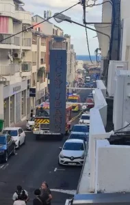 Rue François de Mahy, un incendie s’est déclaré dans un immeuble de deux étages, au dessus d’un cabinet de radiologie du maire Michel FONTAINE, au niveau de la Halle.
