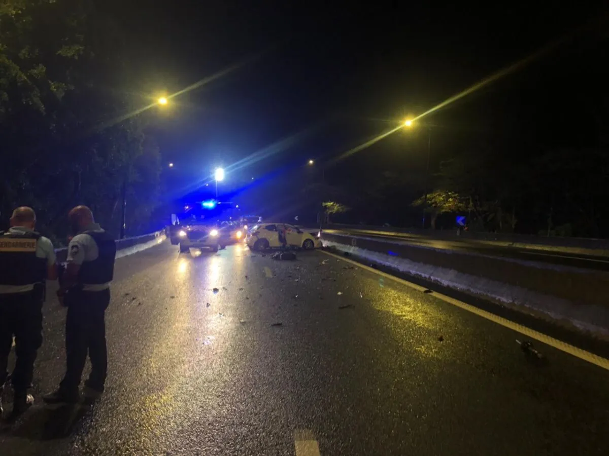 Voici les images édifiantes de cet épisode qui s’est produit vers 23 heures cette nuit, secteur Jamaïque/Chaudron. L’accident a impliqué 2 voitures et fait 3 victimes.