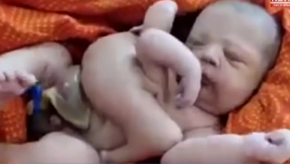Un bébé doté de quatre bras et de quatre jambes est né ce 2 juillet 2022 dans le nord de l’Inde, au centre de santé communautaire de Shahabad, dans l’État de l’Uttar Pradesh.
