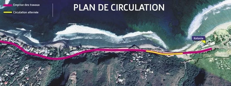 A compter du lundi 7 novembre 2022 au lundi 12 décembre 2022, pour permettre la pose du réseau de refoulement des eaux usées entre Kélonia et Ravine la Chaloupe (Résidence Gabrielle), la circulation sera modifiée temporairement sur la RN1A à partir de 7h30 à 15h30 (hors aléas). Ces travaux de jour nécessitent la mise en place d’un alternat. (Voir plan ci-dessous)
