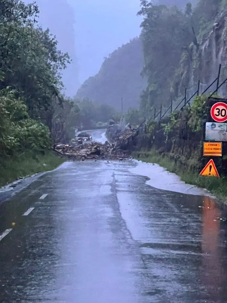 7H45 :RD48 Route de Salazie au lieu-dit la Passerelle, éboulis, route totalement fermée à la circulation. RN2 Ste Rose route des Laves, chaussée inondée par endroit. Circulation difficile. Suite à cet éboulis , des travaux de dégagement d’une voie de circulation sont en cours. Des convois seront organisés uniquement entre 17h et 18h.