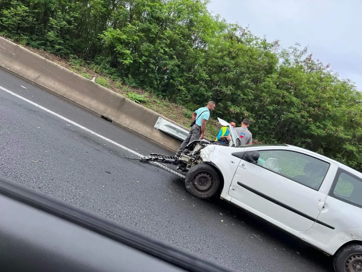 14h45 : 16ème km au Tampon, sens descendant, une sortie de route vient d’avoir lieu sur la voie de gauche.