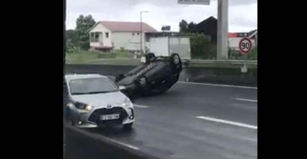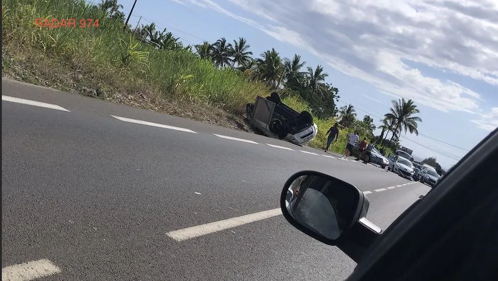 10h25 : Accident 4 voies de St-André vers St-Benoît. Une voiture sur le toit.