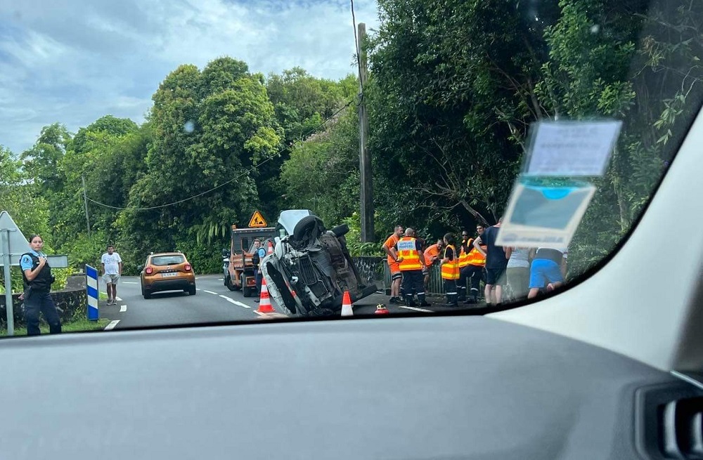 16h00 : accident entre trois véhicules, une voiture était sur le toit, au niveau de Pierrefonds en remontant vers Bois d’Olive.