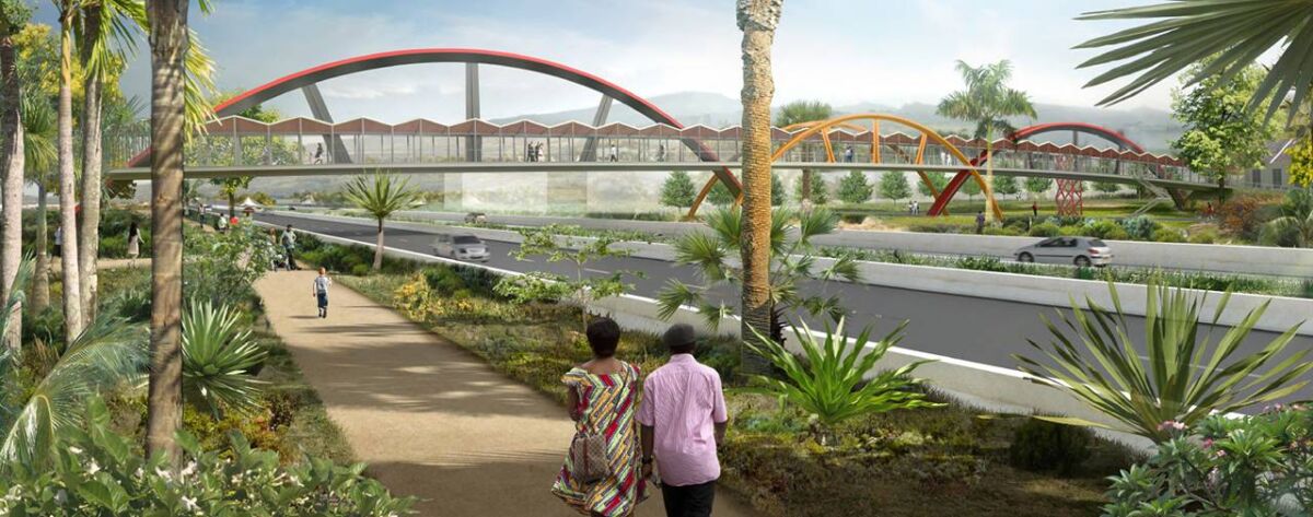 Cette passerelle facilitera le franchissement de la RN1 en vélo et en toute sécurité ce qui assurera de ce fait la continuité cyclable de part et d’autre de la voie automobile.