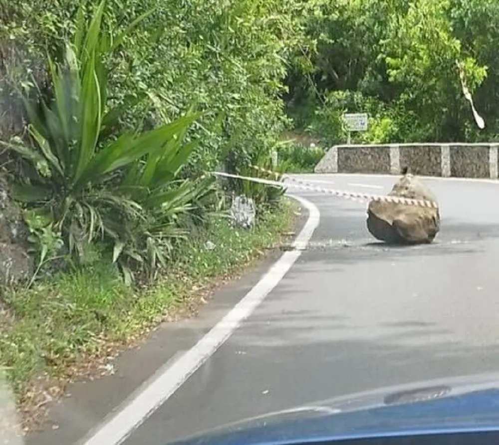 7h23 : un rocher d’environ 1 tonne est tombé RN5 route de Cilaos, voie montante neutralisée.