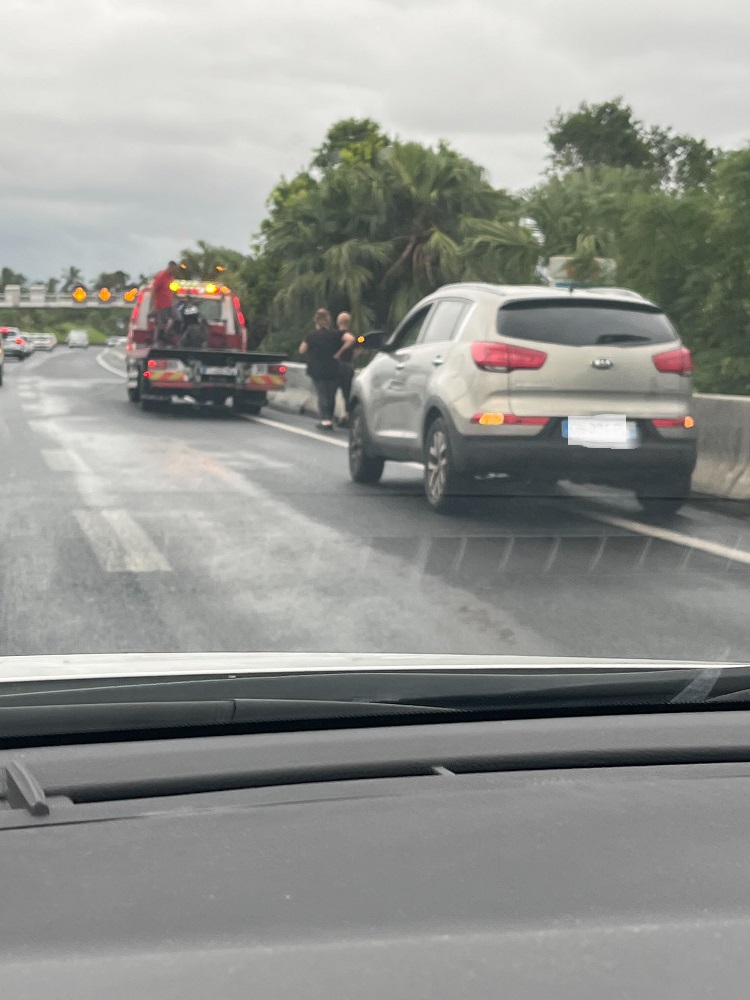 9h45 : voiture accidentée sur les 4 voies de Ste Suzanne, à hauteur de la sortie vers la Marine, dans le sens St-André/St-Denis