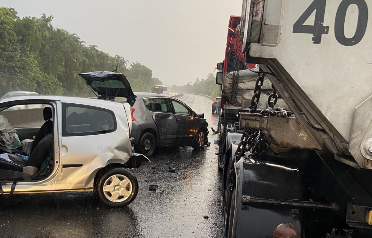 10h : Ravine des chèvres, voie de gauche, vers Ste-Marie, accident entre 3 véhicules