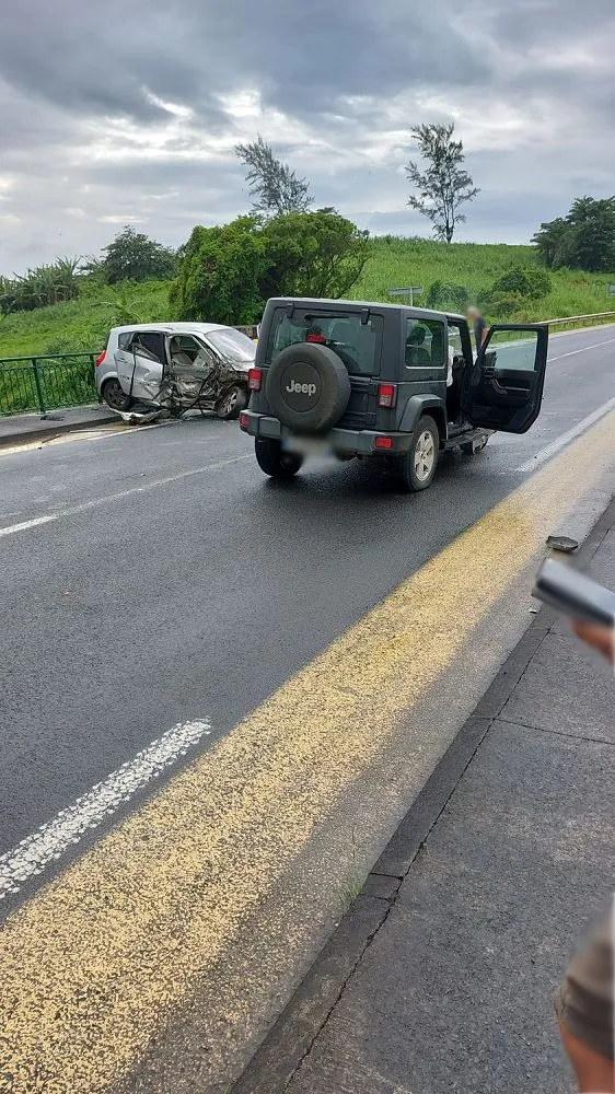 07h : Accident juste après le pont de Petit Bazar sur la 2 x 2 voies RN2 en direction St André >> St Benoît