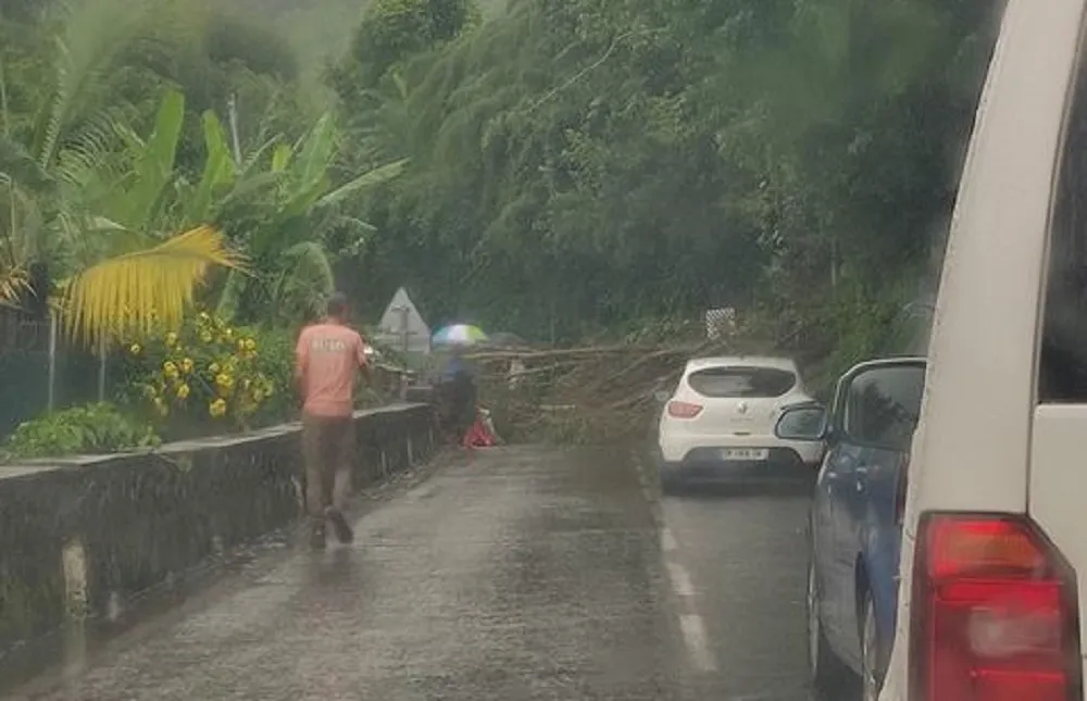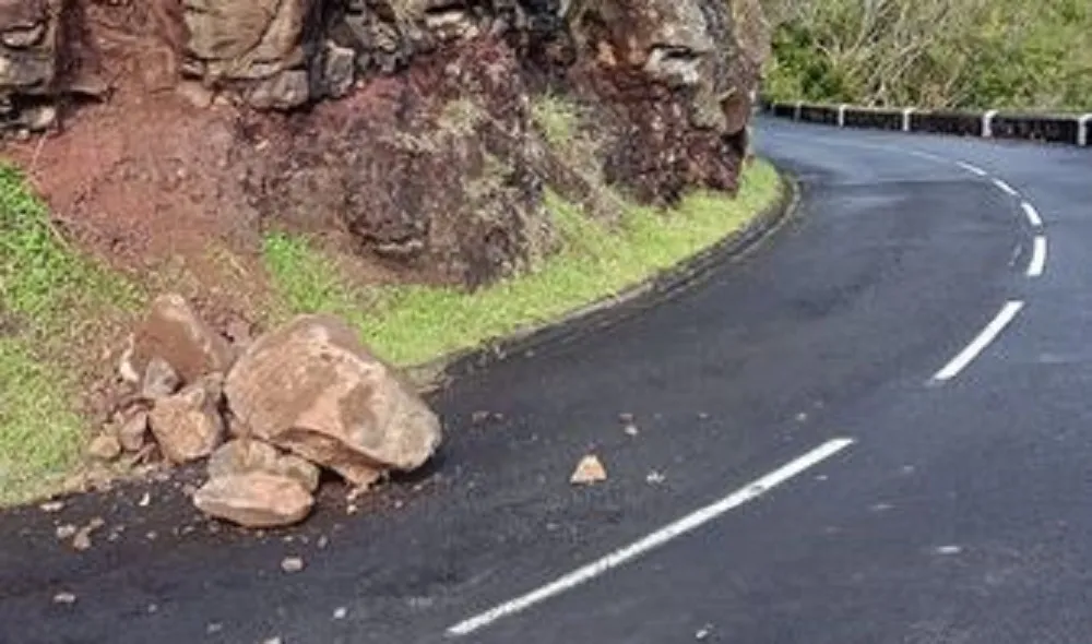 15h15 : éboulis au niveau de chemin ratineau, Dos d’âne. Circulation impossible.