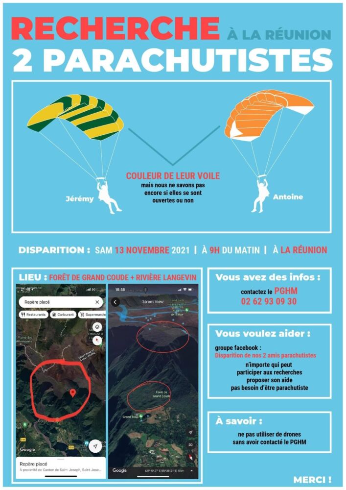 Antoine Marc et Jérémy, deux parachutistes, sont portés disparus depuis ce samedi 13 novembre.