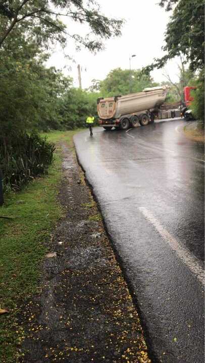 SAINT DENIS LES HAUTS : poids lourd en travers de la route (9H00)