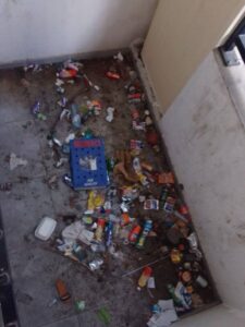Un locataire d’un immeuble de la SODIAC nous a partagé des photos montrant le mauvais entretien des lieux : murs sales, déchets par terre, traces d’urines, malgré des charges mensuelles de 120 euros.