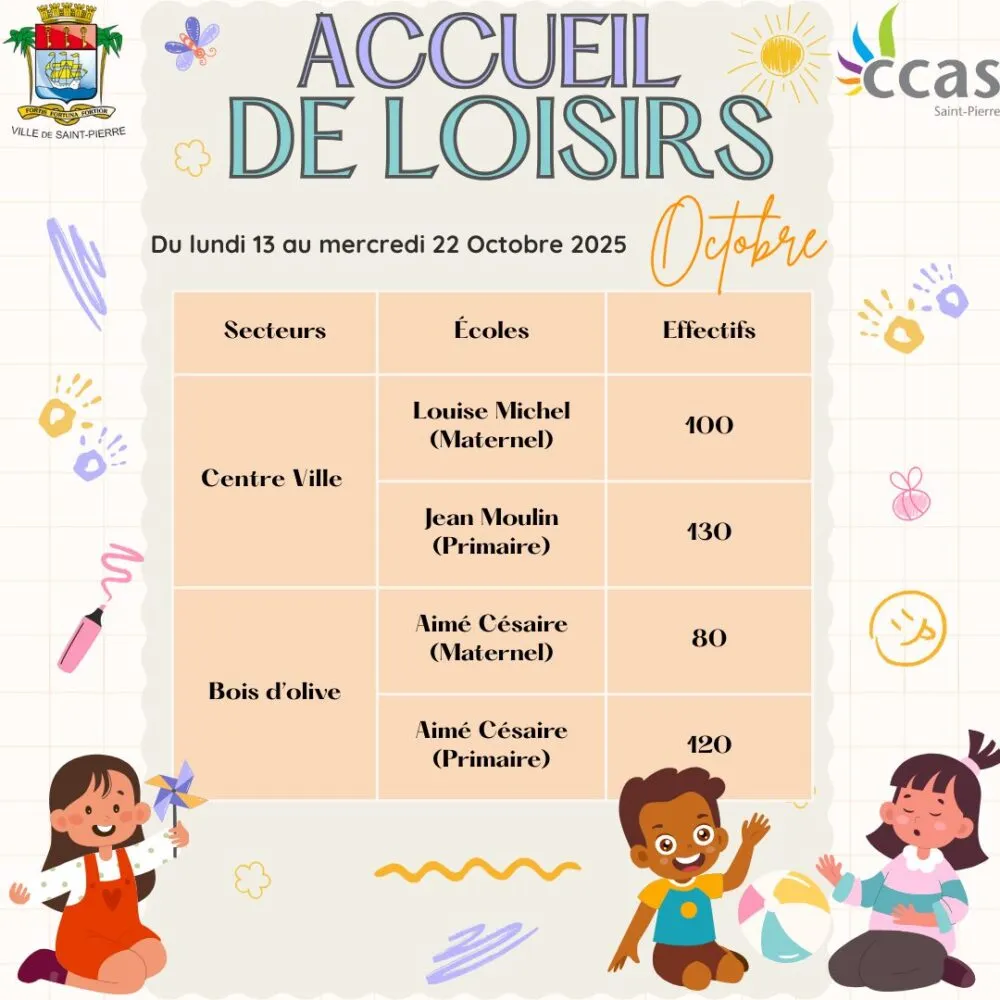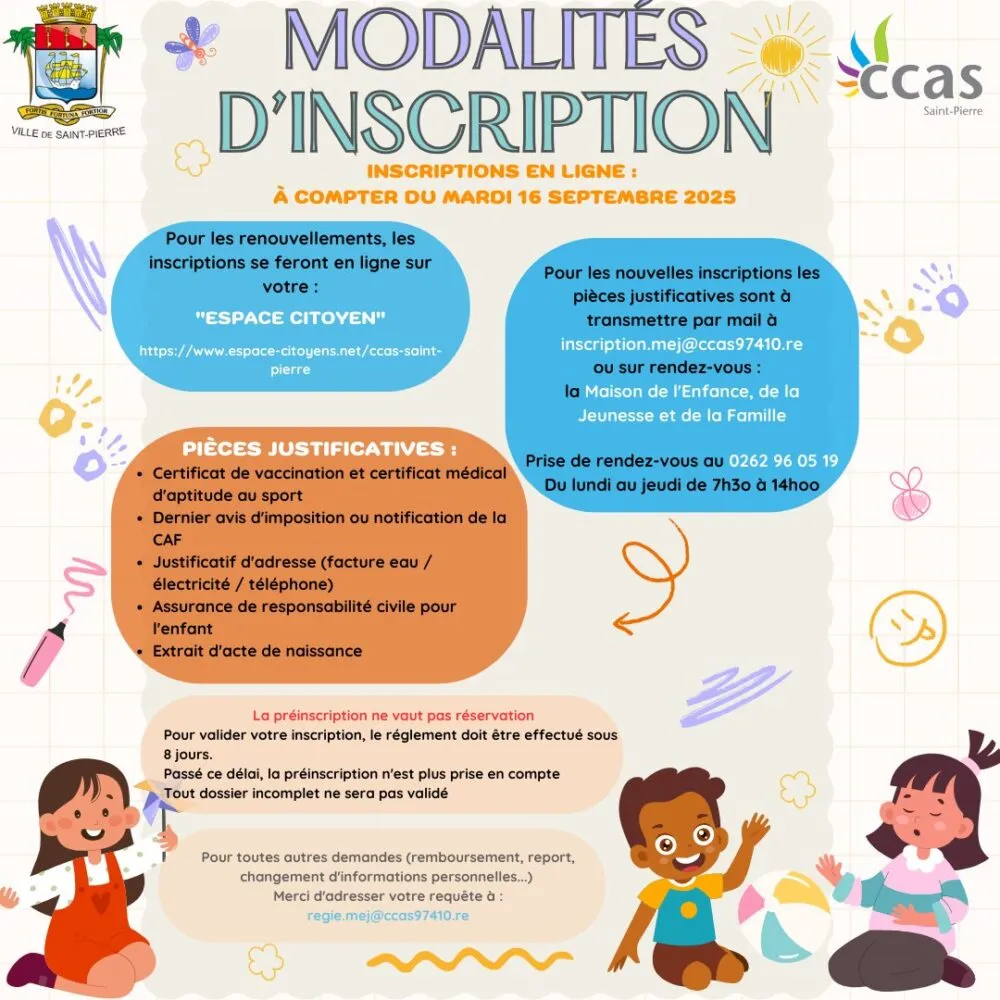Collectivités/Saint-Pierre Inscription ouverte le 16 septembre pour les centres de loisirs pour octobre 2025 par La Rédaction 3 septembre 2025 1 min de lecture Accueils de loisirs – Vacances d’Octobre 2025 Du 13 au 22 octobre 2025 Inscriptions dès le mardi 16 septembre 2025 Toutes les informations pratiques sont disponibles dans la publication Ne manquez pas toute l’actualité de La Réunion ! Abonnez-vous à la newsletter de Free Dom ! Valider Partager Facebook Twitter Pinterest Linkedin Whatsapp Reddit Email Vous pourriez être intéressé par 29 décembre 2025 Point sur le réseau routier départemental, 29 décembre à 16H30 29 décembre 2025 Fortes pluies : appel à la plus grande prudence à Saint-Paul 29 décembre 2025 Intempéries : radiers submergés à Trois Bassins et à Saint-Paul La Rédaction Laisser un commentaire Annuler la réponseYour email address will not be published. Enregistrer mon nom, mon e-mail et mon site dans le navigateur pour mon prochain commentaire. Current ye@r * Leave this field empty Article précédent Inscription pour les centres de loisirs Article suivant Programmation de septembre pour les médiathèques Articles récents... Hommage à Johnny Hallyday sur Free Dom 2 ce 5 décembre Mardi 30 décembre 2025 – Météo, éphéméride et horoscope du jour Saint-Joseph : découverte de 2337 plants de cannabis, arrestation de 2 individus Point sur le réseau routier départemental, 29 décembre à 16H30 Suicide sur le pont de la Rivière d’Abord : importante mobilisation des secours et des forces de l’ordre Radier submergé à Ilet Furcy : la route de Cilaos fermée à la circulation cette nuit Fortes pluies : appel à la plus grande prudence à Saint-Paul Saint-Gilles-les-Bains : une route impraticable, les riverains montent au créneau (VIDEOS) Très grands excès de vitesse : un délit passible de prison depuis le 29 décembre 2025 Fermeture temporaire du sentier de la Canalisation des Orangers (cirque de Mafate)