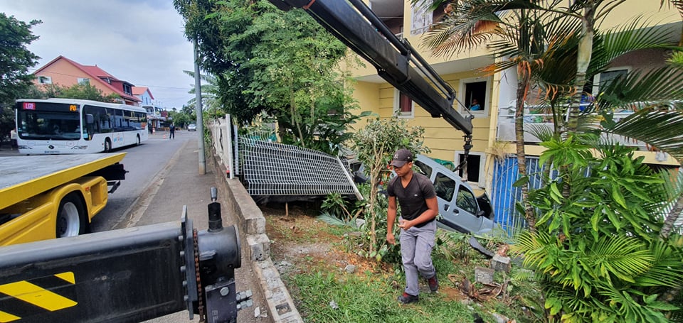 INSOLITE : perte de contrôle à St Leu, une voiture finit sa course sous la véranda d’un appartement