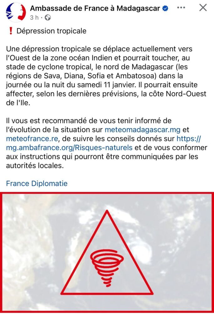 Bulletin du 12 janvier à 06h56 locales de La Réunion (05h56 locales de Mayotte)