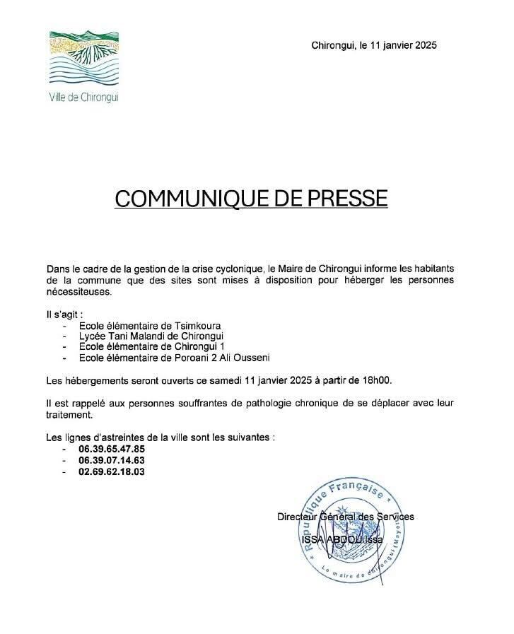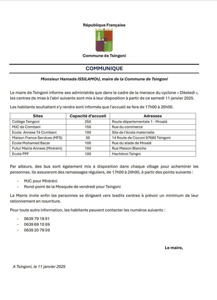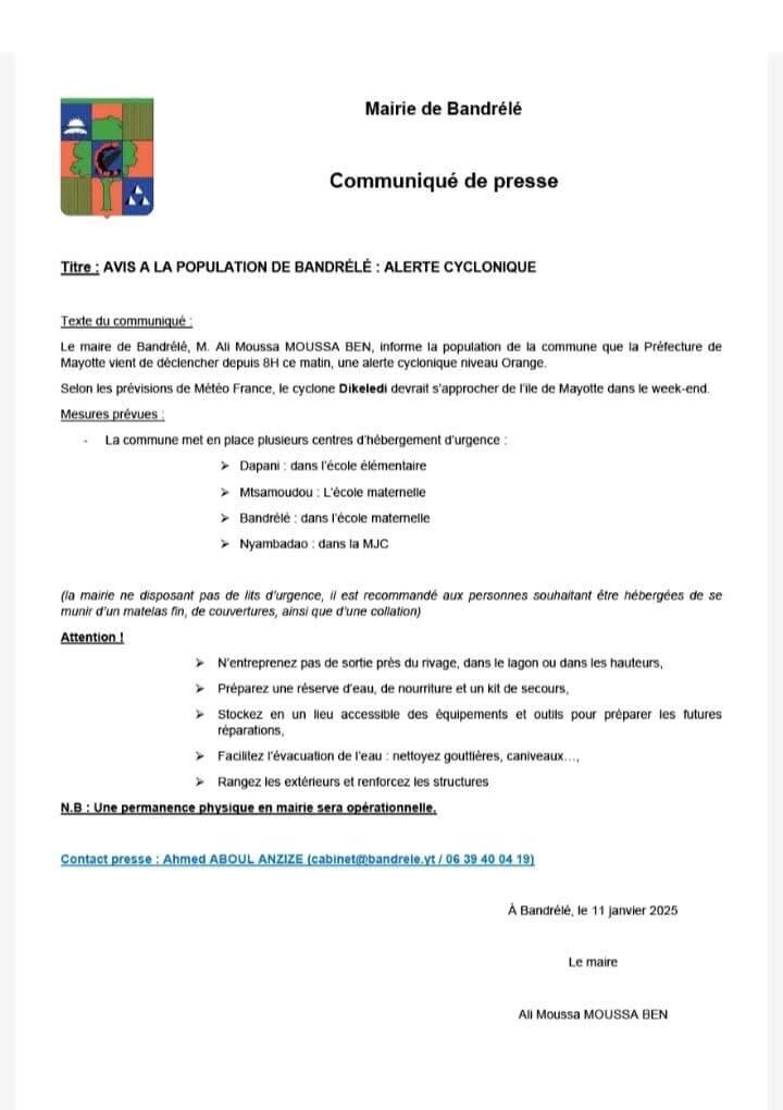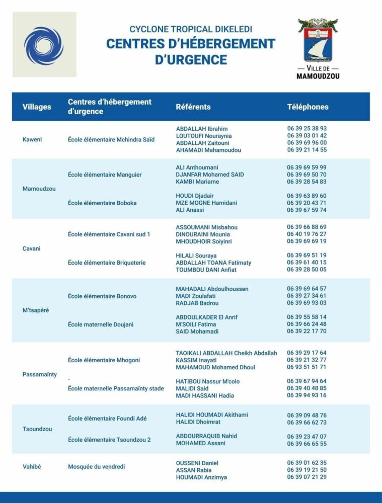 Vers 16h45, le ministère des Outre-mer a indiqué avoir fait un point de situation avec le Préfet de Mayotte concernant l’arrivée de la tempête tropicale Dikeledi. Plus de « 700 personnels ont été déployés sur le terrain » pour assurer la sécurité de la population. Les services de l’État sont « pleinement mobilisés face à cette situation ».