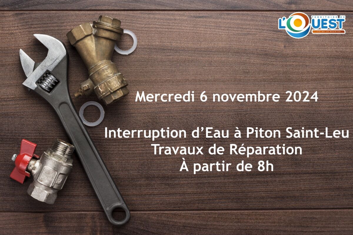 Le Territoire de l’Ouest informe les habitants de Piton Saint-Leu qu’une interruption de la distribution d’eau aura lieu le mercredi 6 novembre 2024 . Cette coupure est due à des travaux de réparation sur la conduite principale située sur l’Avenue Cristal, qui débuteront à 8h .